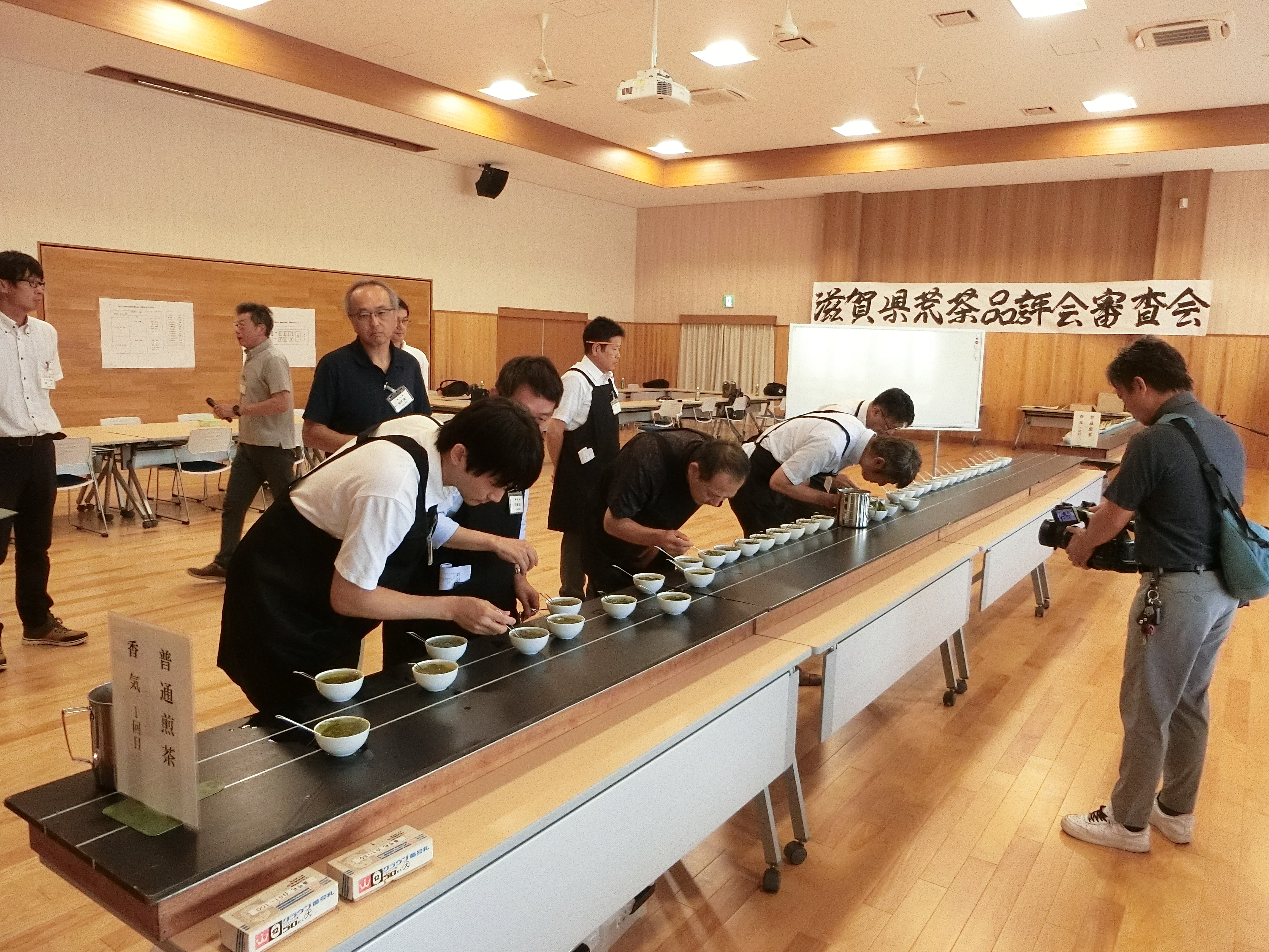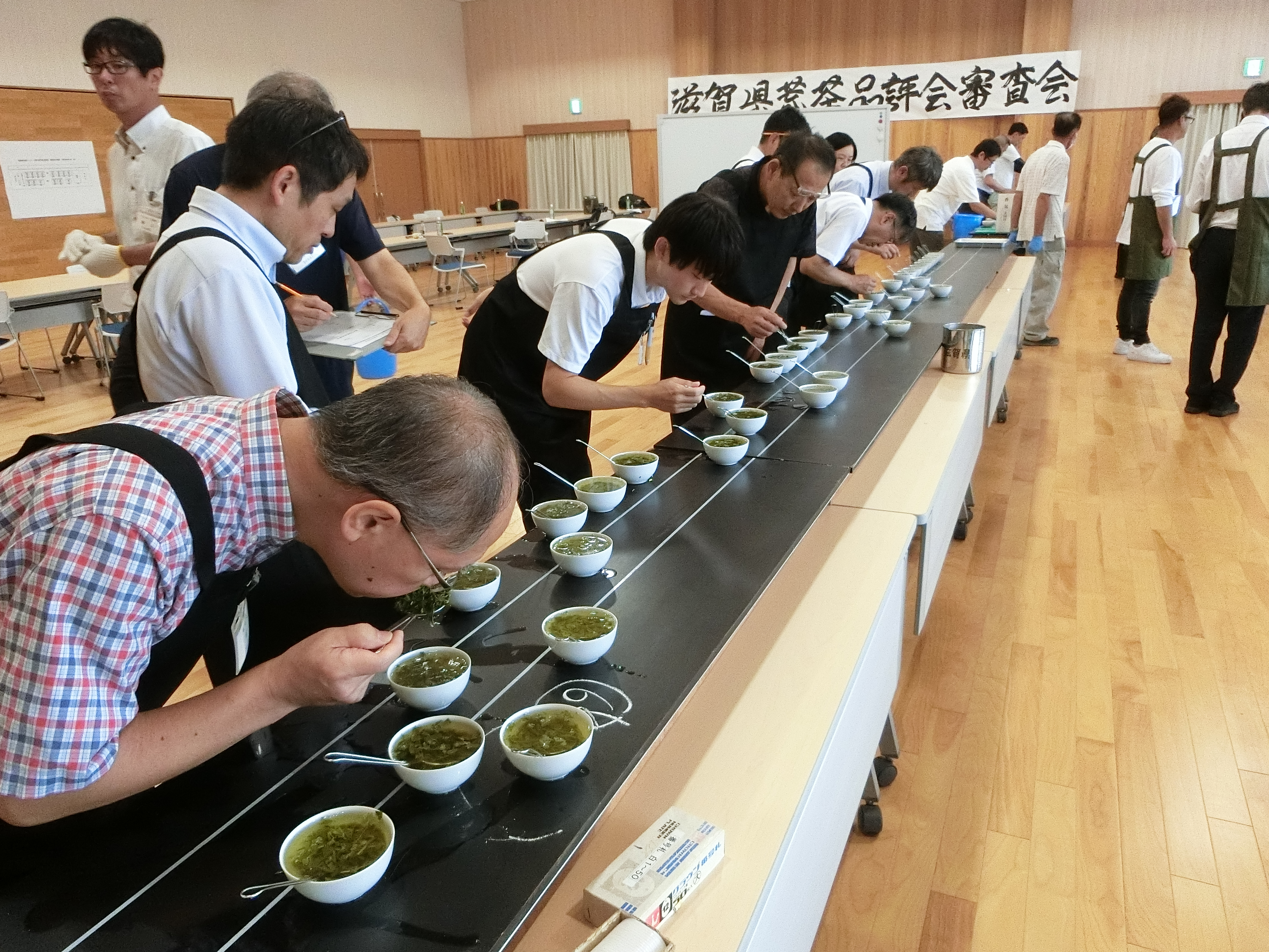 本年の茶の出来栄えを競う「滋賀県茶業コンクール第49回荒茶品評会審査会」が9月4日、滋賀県甲賀市土山町にある甲賀市土山開発センターで行われました。