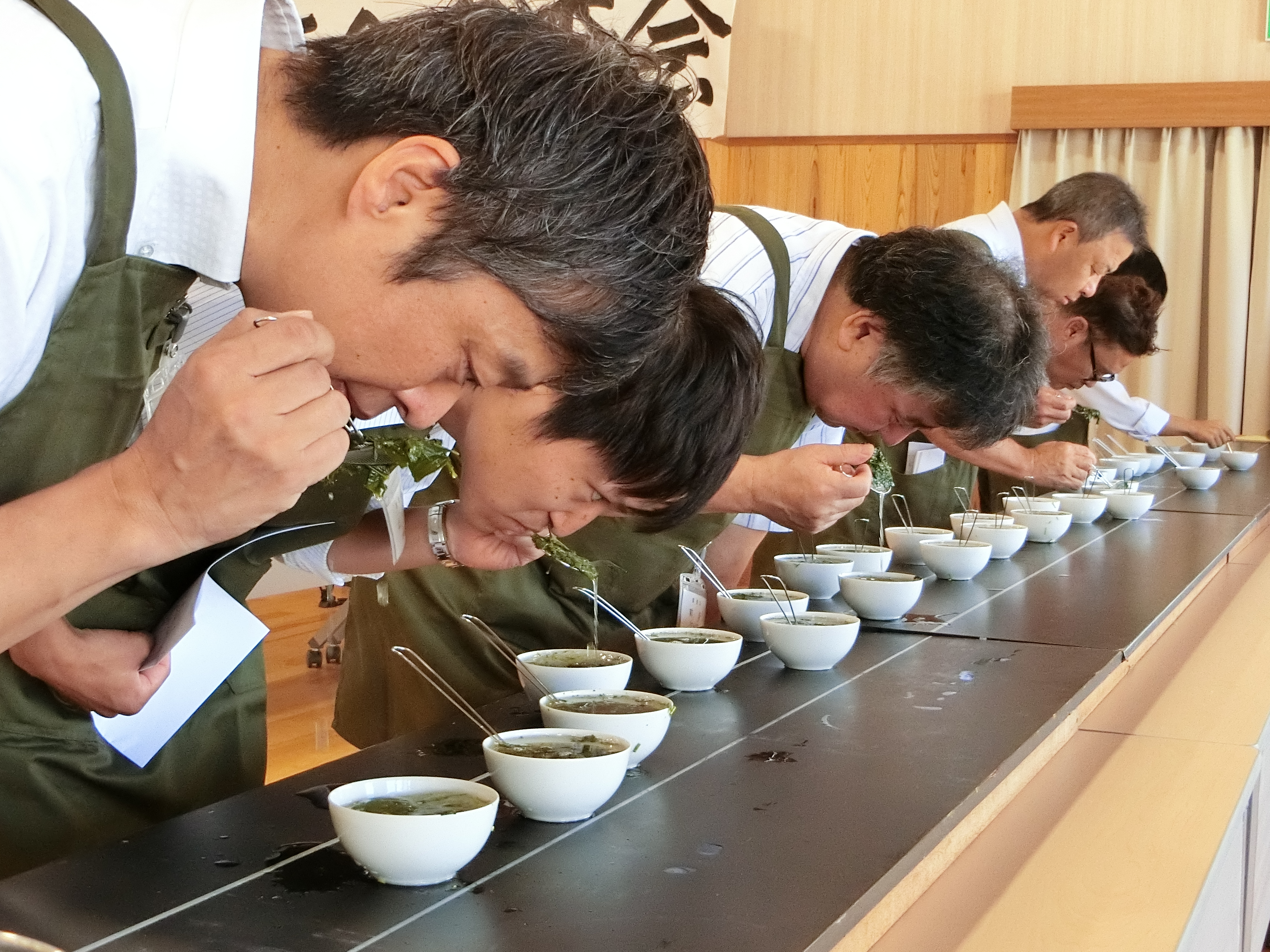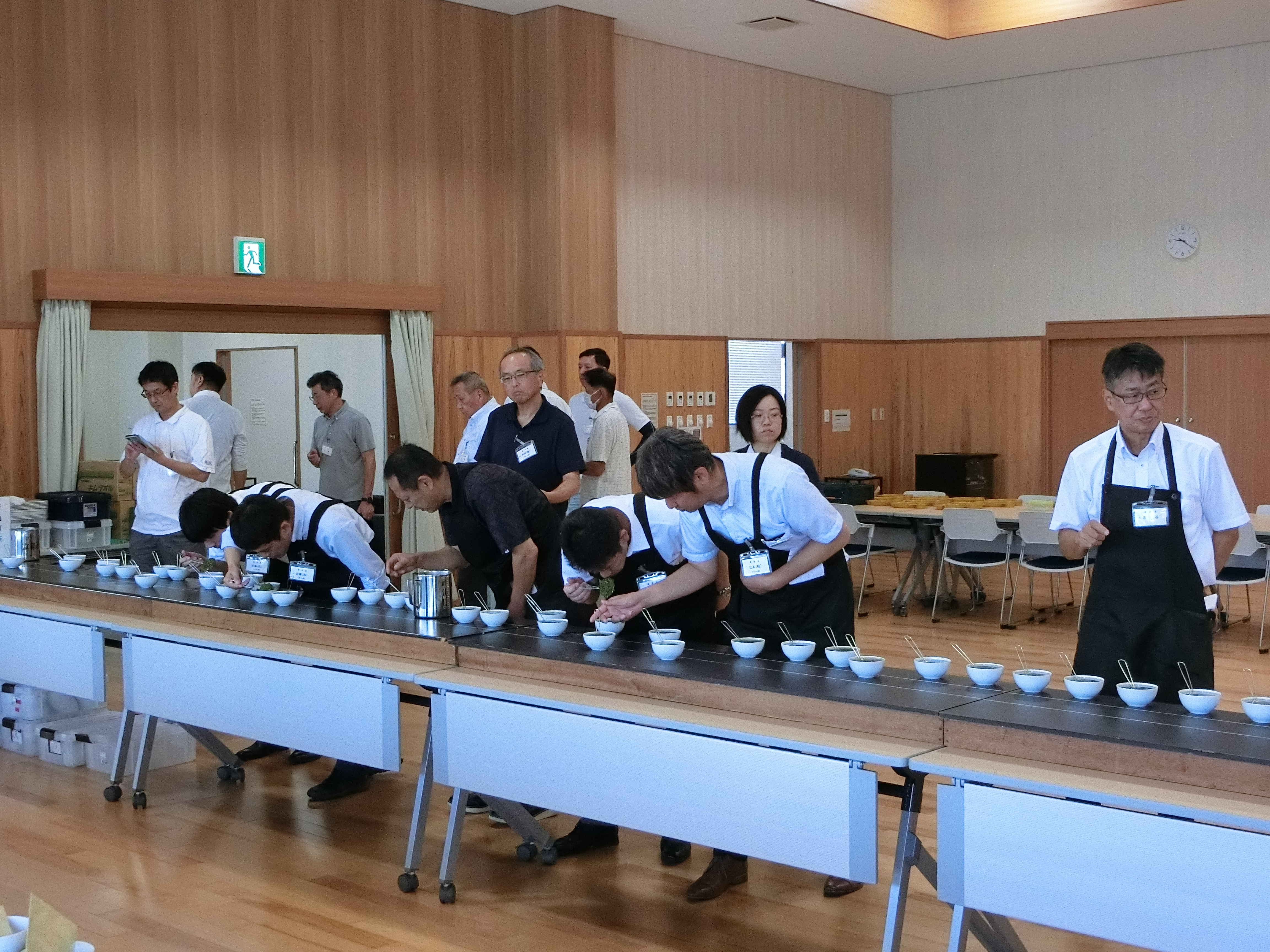 審査は13名の審査員にせん茶、かぶせ茶の2班体制で臨んでいただいたことから、審査もスムーズに進行し午後4時には擬賞会を開催することができ、審査員及び補助者の皆様には終日に亘り大変お疲れ様でした。