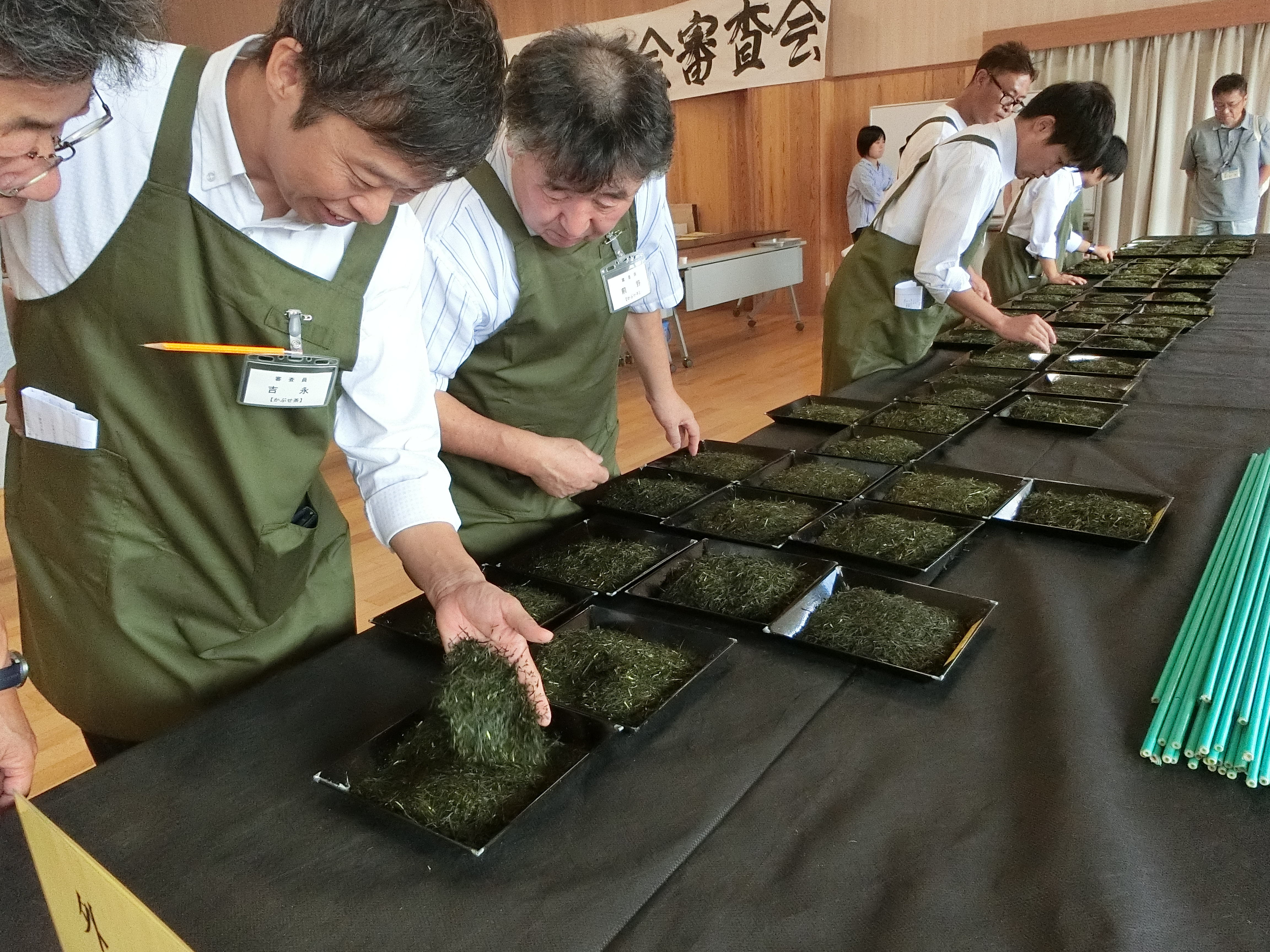 本年は、晩霜害もなく、天候にも恵まれたことから、近年にない良質茶が生産されました。そうしたことからせん茶では昨年より37点も出品点数が増え、今までにない活況な荒茶品評会となりました。