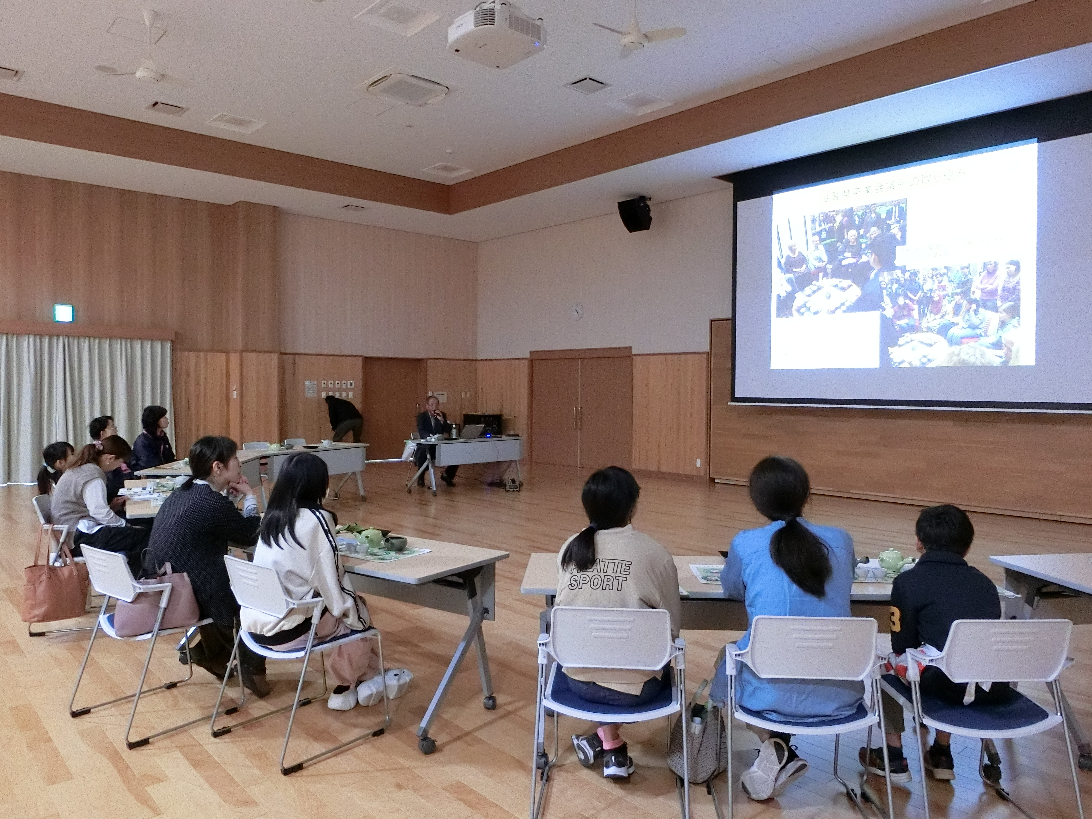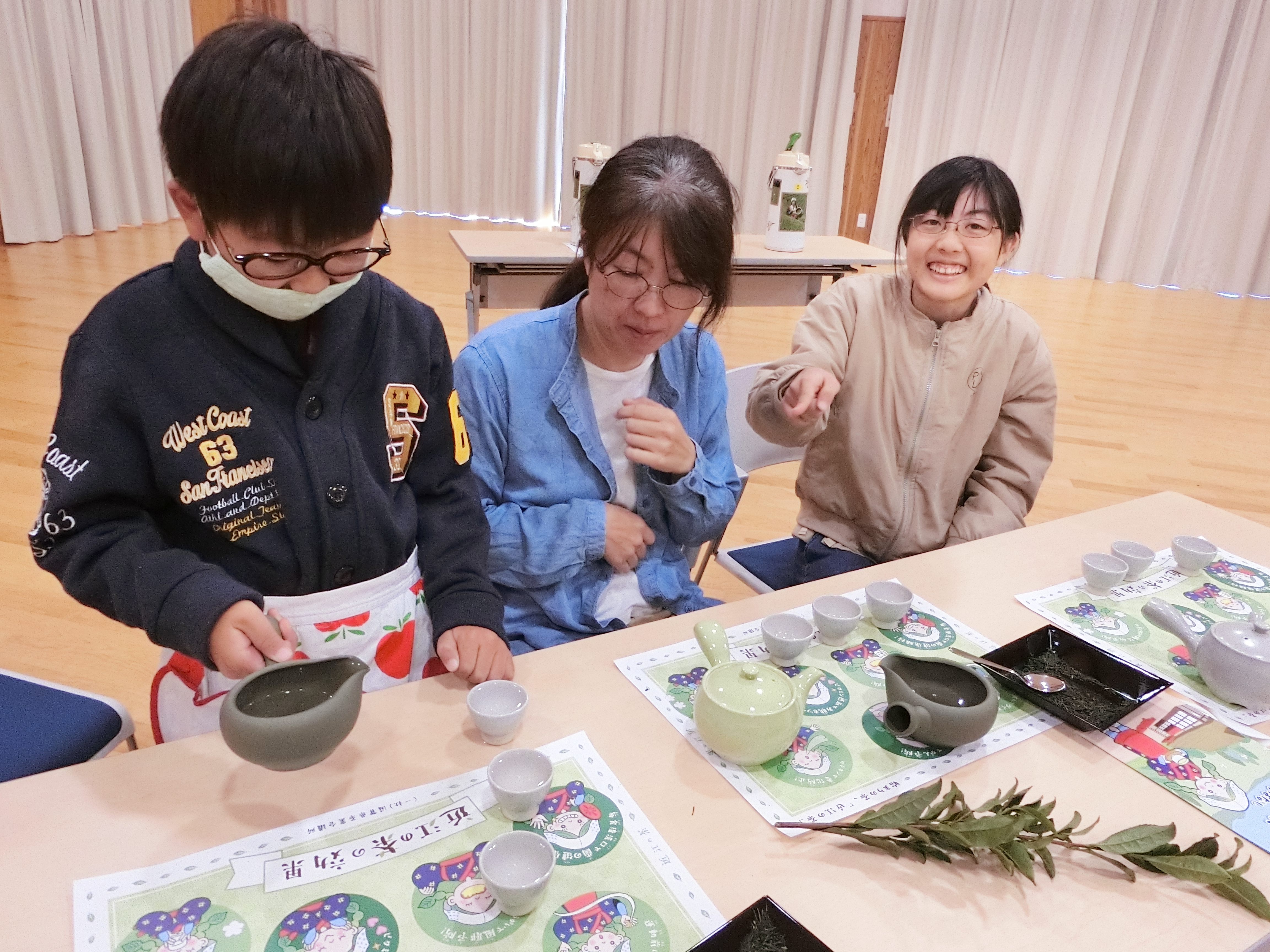 令和6年11月9日(土)「地域で創る土曜日夢の学習」階にお伺いしました。土山の特色を生かしたお茶の教室「茶々っ子教室」を開設されていて、お茶の歴史を知り、茶摘みやお茶を使ったお菓子作り、美味しいお茶の淹れ方など年間を通して開催されています。今回は親子での学習会ということで、土山開発センターにおいて、県内のお茶の栽培状況や、歴史、お茶の持つ茶カテキンの効能、美味しいお茶の淹れ方など1時間の講義となりましたが、熱心な受講に感心しながら、取り組まさせていただきました。