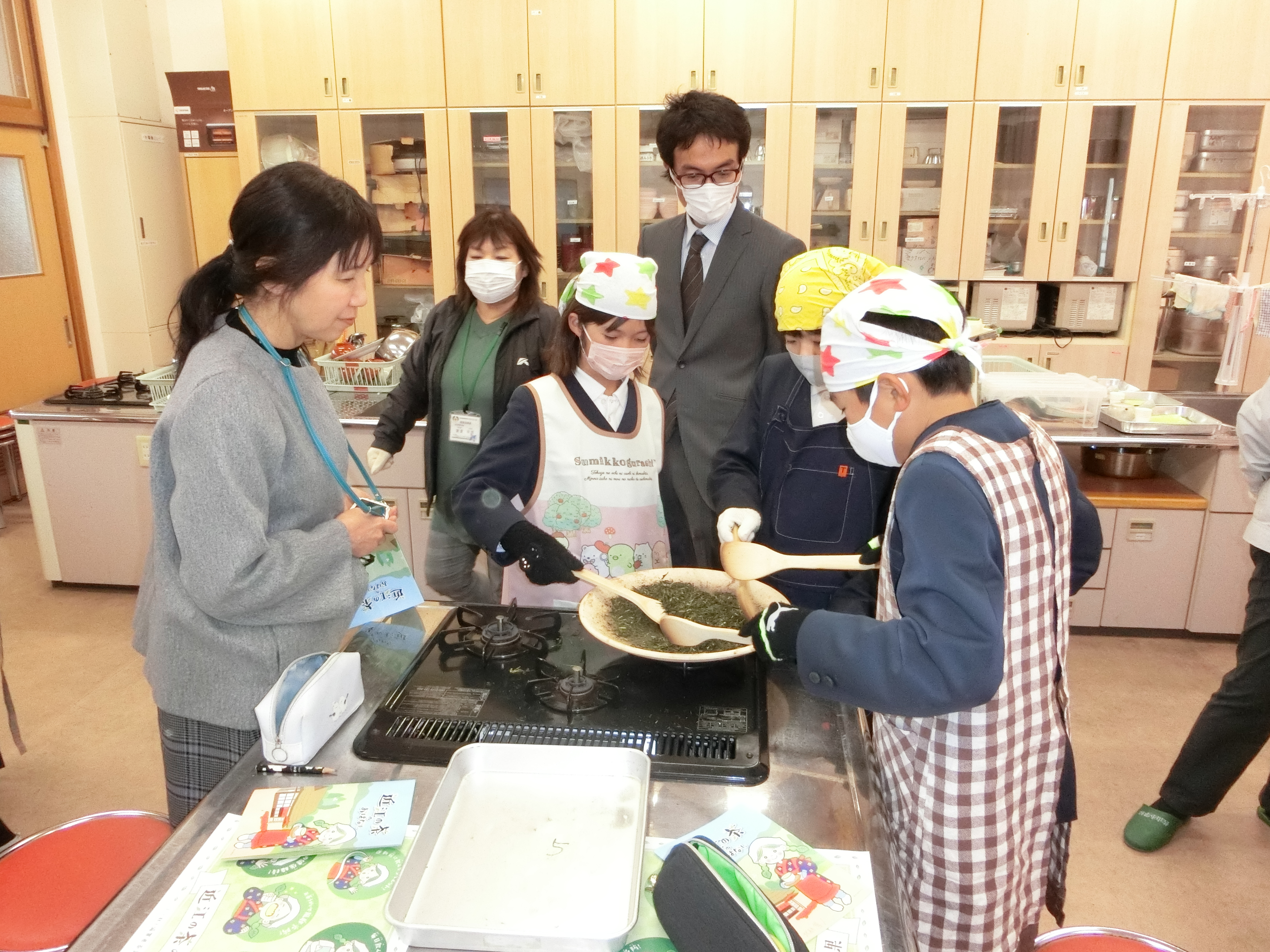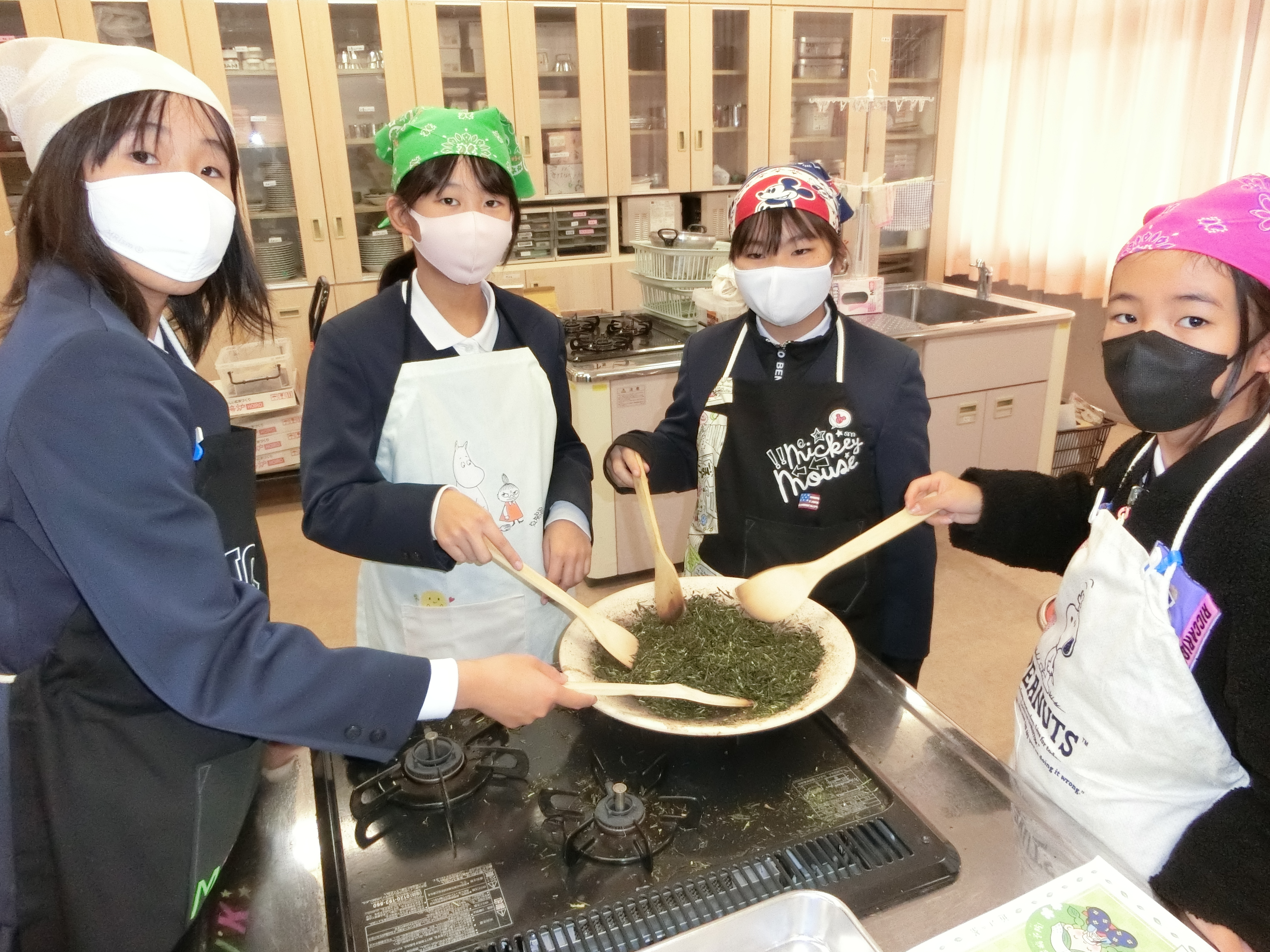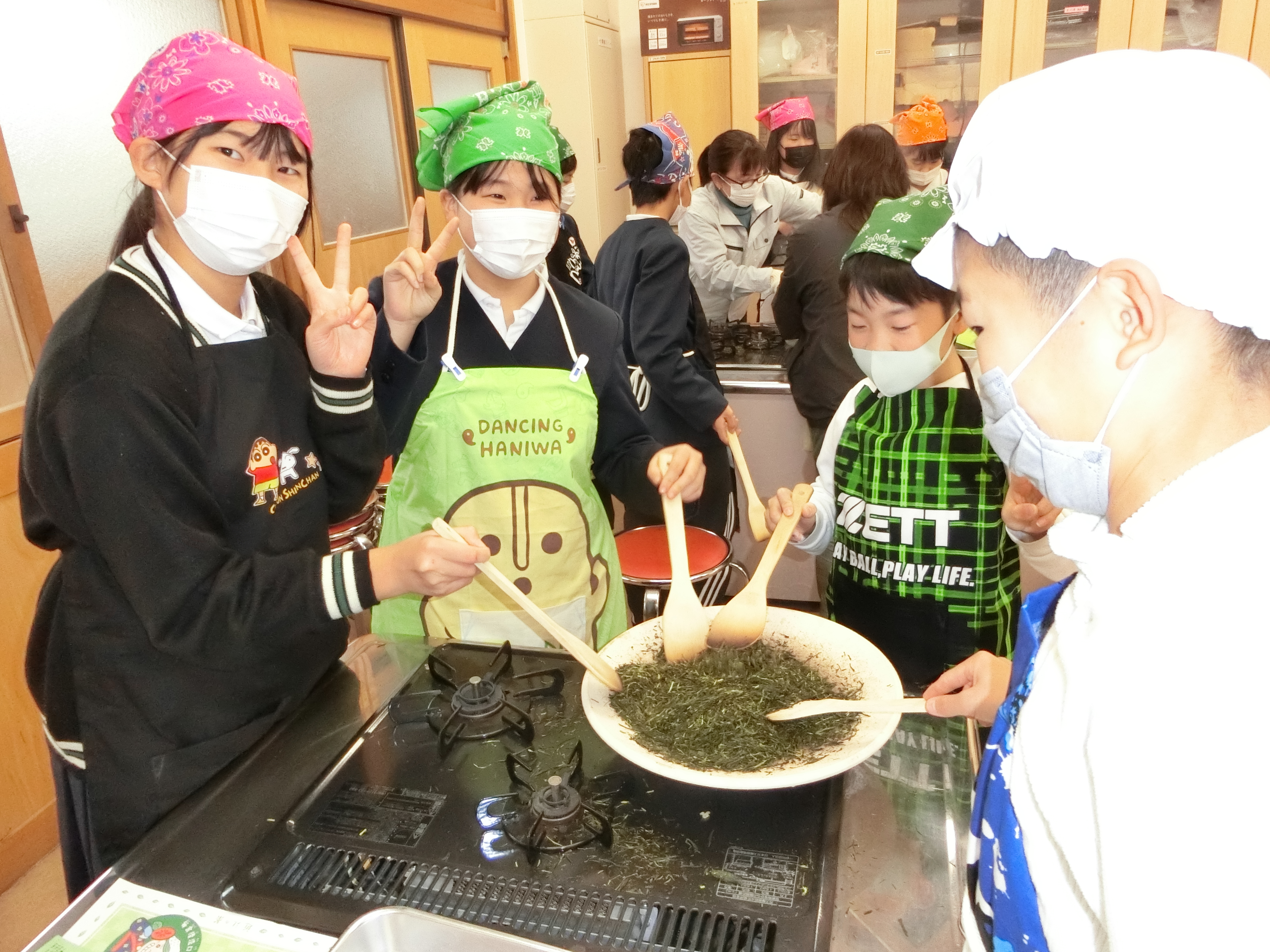 12発13日、甲賀町の佐山小学校にお邪魔しました。5年生12人を対象とした家庭科の授業で、近江の茶のお話とほうじ茶の製造体験を通じ、身近なお茶について知っていただきました。