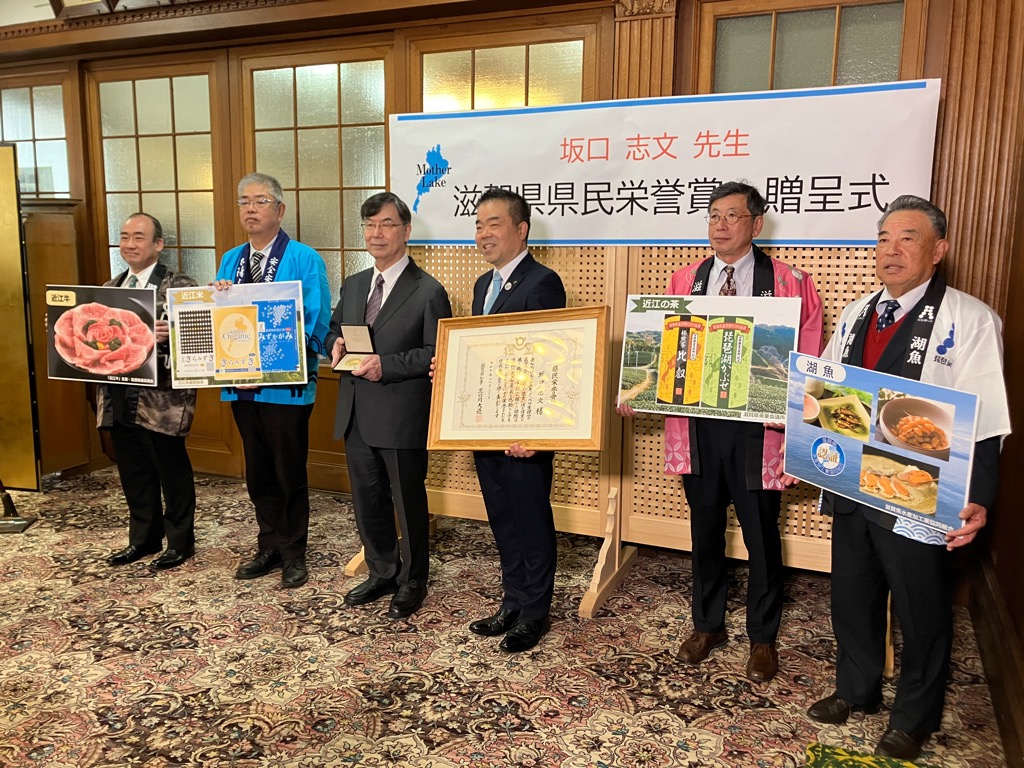 滋賀県出身の坂口志文さんに県民栄誉賞が贈呈されました
